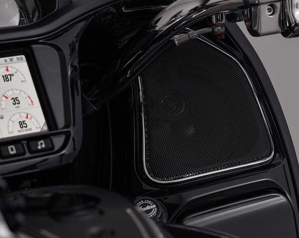 | Info entretenimiento | Pantalla táctil de 7" gestionada por RIDE COMMAND: Pantalla táctil de 7 pulgadas con reloj horario; temperatura ambiente; rumbo; visualización de información de audio; mapa/navegación; estado del Bluetooth para el teléfono y los auriculares; estado del vehículo (presión de los neumáticos, voltaje, horas del motor, cambio de aceite); información del vehículo (velocidad, autonomía, RPM, posición del cambio ); datos actuales del viaje (distancia, tiempo de desplazamiento, tiempo de parada, altitud, cambio de altitud); cuentakilómetros parciales; selección del modo de conducción; brillo de la pantalla; lectura del código de problemas del vehículo; integración de Apple CarPlay. |