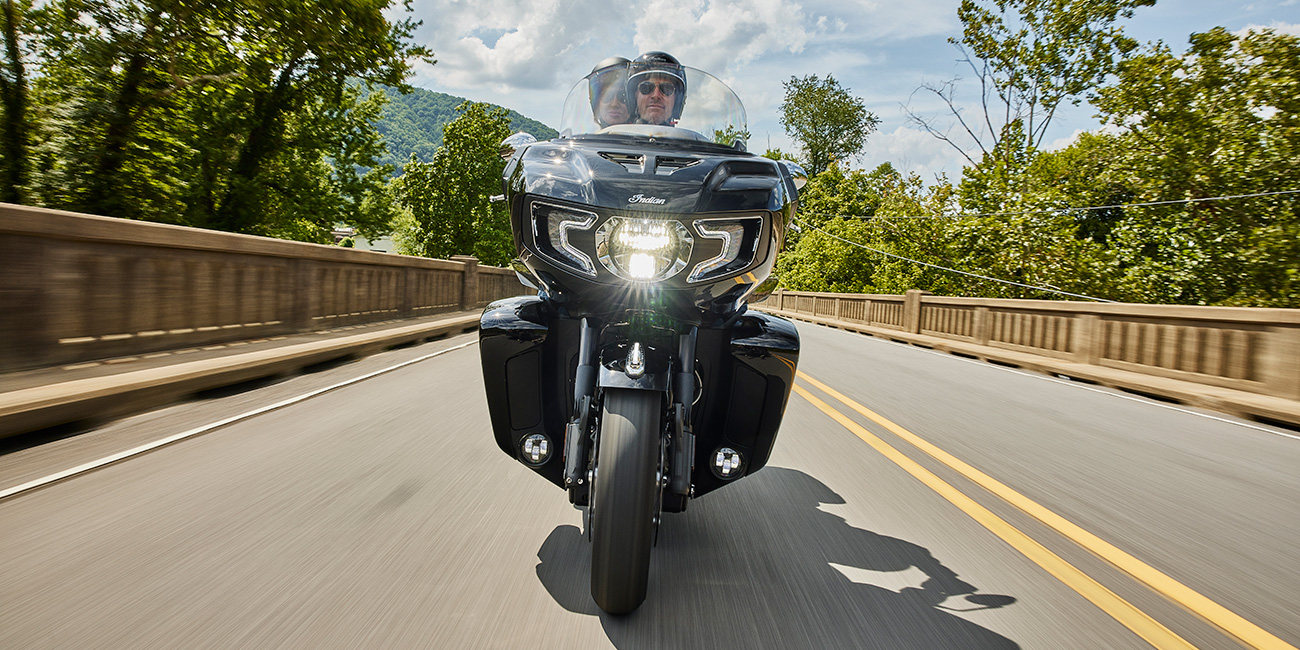 | EEquipamiento estándar | Tecnología Smart Lean; precarga de suspensión trasera ajustable electrónicamente; asiento calefactado; luces diurnas integradas en el carenado inferior; almacenaje en el carenado inferior; pantalla táctil de 7" gestionada por Ride Command con integración Apple CarPlay; modos de conducción seleccionables; desactivación cilindro trasero; control de crucero; monitorización presión neumáticos; maletas rígidas y maletero con cierre remoto; + de 136 litros de almacenaje; defensas Highway; plataformas reposapiés del pasajero ajustables; frenos Brembo; ABS; encendido sin llave; carenado anclado al bastidor; parabrisas eléctrico; entradas de flujo de aire en el carenado ajustables; puños calefactables; sistema de audio de 200W con AM/FM; Bluetooth; USB; entrada compatible con Smartphone, toma de carga de 12V |