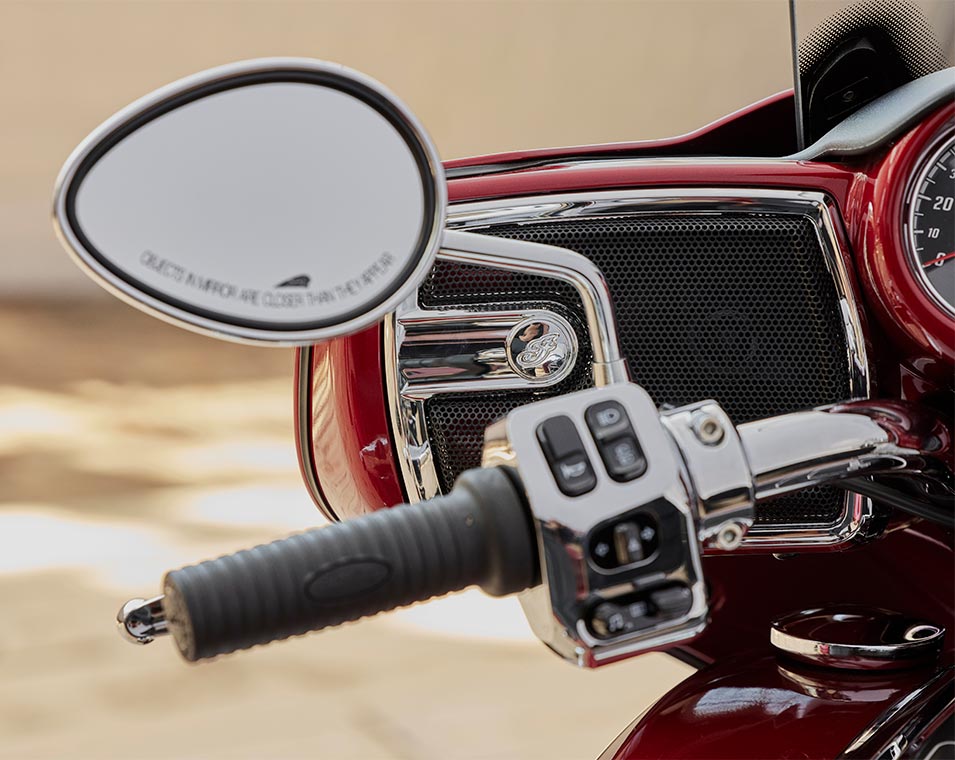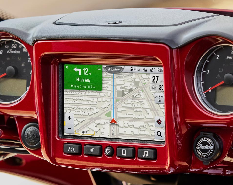 | EEquipamiento estándar | Pantalla táctil de 7 pulgadas gestionada por RIDE COMMAND e integración Apple CarPlay; parabrisas eléctrico; defensas Highway; Asientos Rogue de vinilo; puños calefactables; plataformas reposapiés del pasajero ajustables; 137 litros de almacenaje; monitorización presión neumáticos; maletas rígidas y maletero con cierre remoto; modos de conducción seleccionables; desactivación cilindro trasero; ABS; control de crucero; encendido sin llave; sistema de audio de 200W con AM/FM; Bluetooth; USB; entrada compatible con smartphone; toma de carga de 12V |
