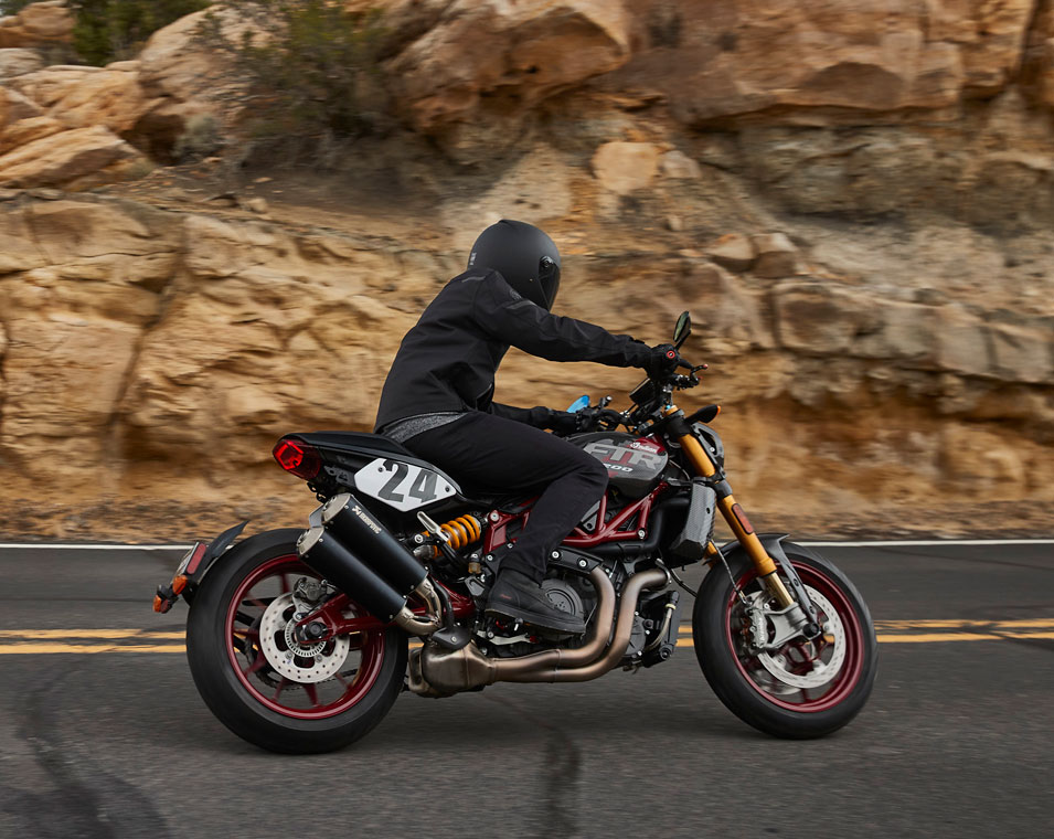Tanto si estás en ralentí o circulas a gran velocidad, el potente motor de la FTR acentúa el estilo de la moto. ¡No olvides subir el volumen!