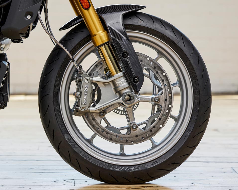 | EEquipamiento estándar | Modos de conducción (Rain, Standard, Sport), ABS sensible al ángulo de inclinación, control de estabilidad, control de tracción, control de wheelie y mitigación de elevación trasera, puerto de carga USB, control de crucero. |